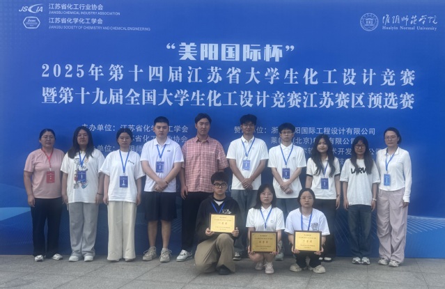 在第十九届全国大学生化工设计竞赛中,由石春玲、连露露、韩燕玲、周俊等老师指导的张丽娟、郭中玉、蒋劲松、董茜、朱婧等同学荣获全国三等奖7项;华东区二等奖2项、三等奖5项;江苏省特等奖1项、一等奖3项、二等奖13项。在第八届全国大学生化工实验大赛华东区赛中,葛奉娟老师指导的陈芝威、张圣武、史定川团队获仿真单项奖。