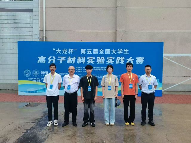 720日至23日,大龙杯第五届全国大学生高分子材料实验实践大赛(双实大赛)总决赛在泉城济南举行大赛由教育部高等学校材料类专业教学指导委员会指导,由全国大学生高分子材料实验实践大赛竞赛委员会主办。刘梦欣、陈成、谭前程三名同学组成的代表队在董黎明、王士凡、丁跃老师的悉心指导下,在全国102所高校600余名师生脱颖而出,分别斩获一等奖1项、二等奖2项。